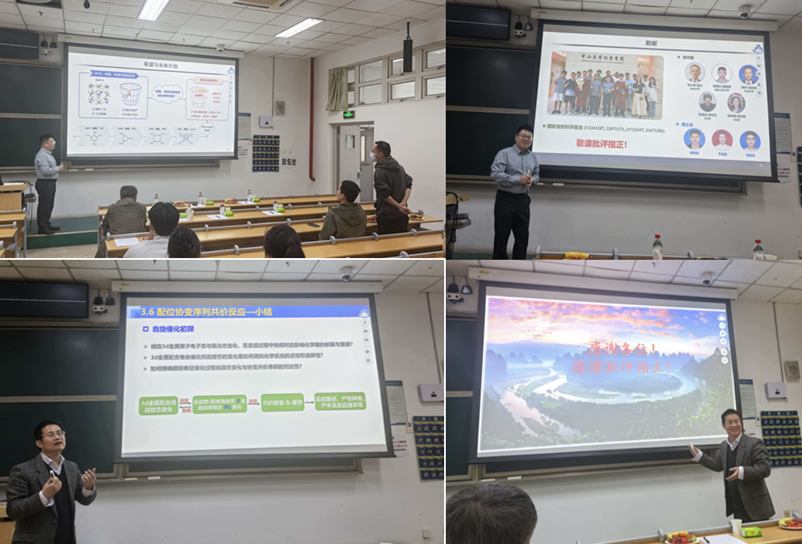 张伟雄教授现任中山大学教授、博士生导师,化学gopay钱包官网 副院长,主持承担面上项目、优青项目、联合基金重点项目等多项国家自然科学基金项目,现兼任含能材料全国重点实验室学术委员、中国化学会第31届理事会青年委员、广东省化学会第9届委员会常任理事。他围绕多离子集成含能材料的设计理念、构筑方法、性能及应用等问题,系统介绍了其团队在离子型杂化材料与含能材料领域的代表性成果。张教授重点阐述了如何通过阴离子导向组装实现新型含能材料的创新设计,并展示了创制的无需硝化、易于放大生产、兼具军民应用潜力的多离子集成含能材料体系。报告还介绍了其团队构建的从基础研究到应用转化的全链条单质炸药创新体系的相关进展,其中典型化合物已实现吨级量产,其关键技术在关键领域已完成工程化应用。他的报告充分体现了基础研究与工程转化紧密衔接的鲜明特色,也为在场师生理解功能材料从实验室研究走向实际应用提供了重要启发。