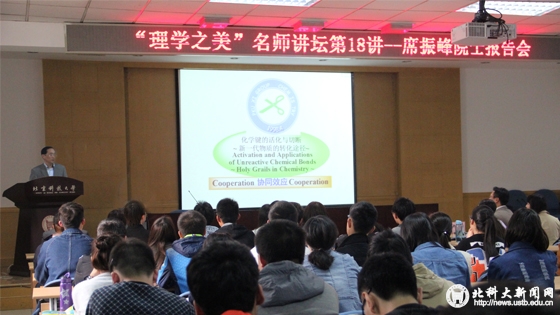 北京科技大学“理学之美”名师讲坛第18讲于2016年3月31日下午在建龙报告厅开讲。中国科gopay钱包官网 院士、北京大学化学gopay钱包官网 席振峰教授为我校师生做了题为《双金属有机合成试剂化学》的学术报告。我校校长张欣欣,副校长王戈在报告会前与席振峰教授进行了会谈,代表学校对席教授的到来表示由衷的欢迎和感谢。