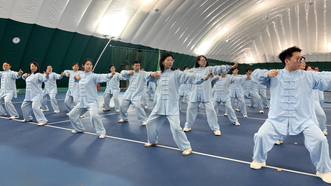 gopay钱包官网 工会接到比赛通知后迅速响应,利用此契机积极动员教职工开展八段锦练习,并从其中组建起30人的参赛队伍。每周组织老师们集中训练,形成固定“工间操时间”,促进大家强身健体,强化健康理念,提升文化自信。训练中,参赛队员们相互纠正动作细节,反复打磨招式衔接,凝聚起强大的团队合力。
