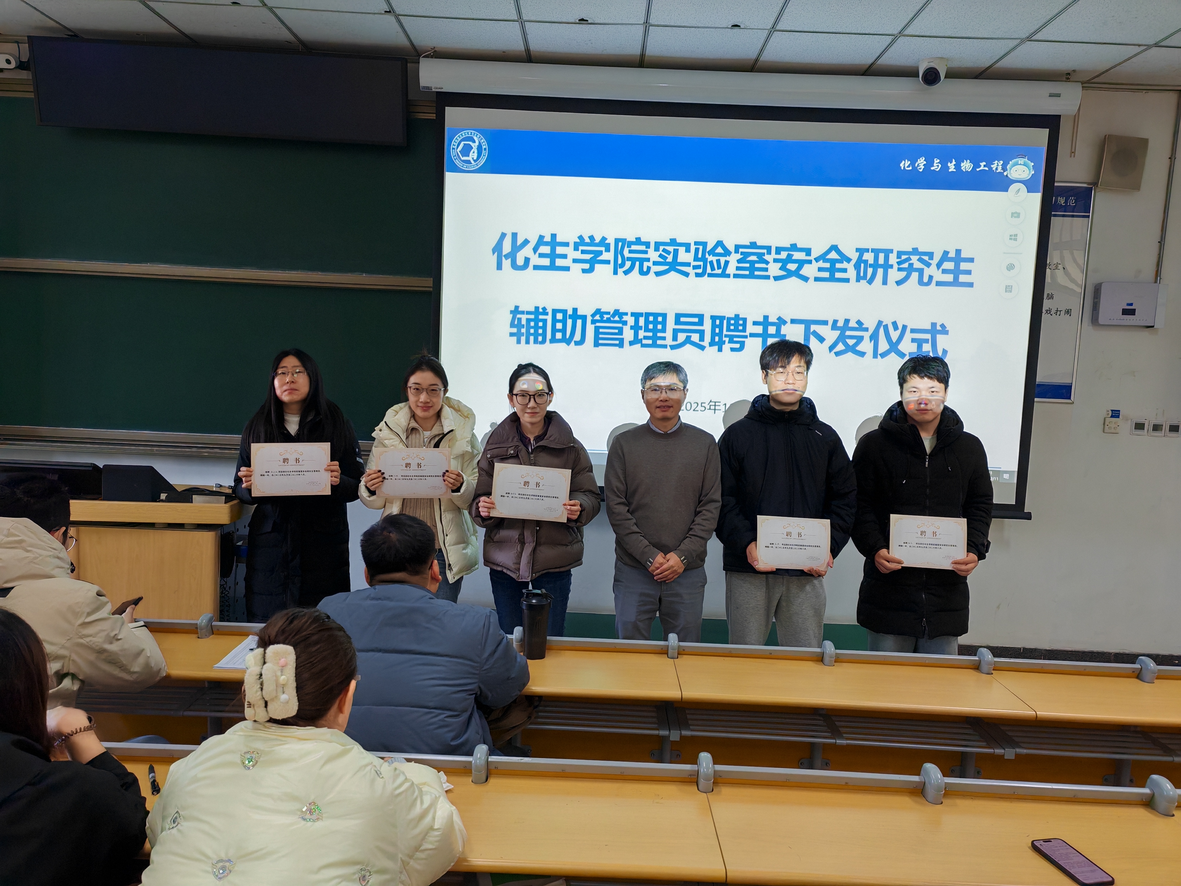 接着,王院长向研究生辅助管理员代表颁发了聘书。这份聘书既是对大家过往工作的肯定,也意味着一份厚重的责任。受聘研究生代表们纷纷表示,将以强烈的责任感和使命感投入实验室安全管理工作,切实履行好职责,不负gopay钱包官网 信任。